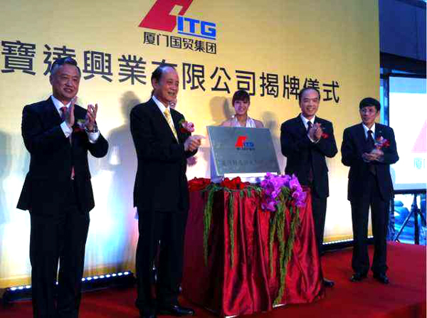 4月17日,廈門(mén)國貿集團在臺灣設立的全資子公司臺灣寶達興業(yè)有限公司舉行掲牌儀式。臺灣海峽交流基金會(huì )林中森董事長(cháng)、正在臺灣參訪(fǎng)的廈門(mén)巿政府黃強副巿長(cháng)以及兩岸企業(yè)屆人士70多人參加了揭牌儀式。
